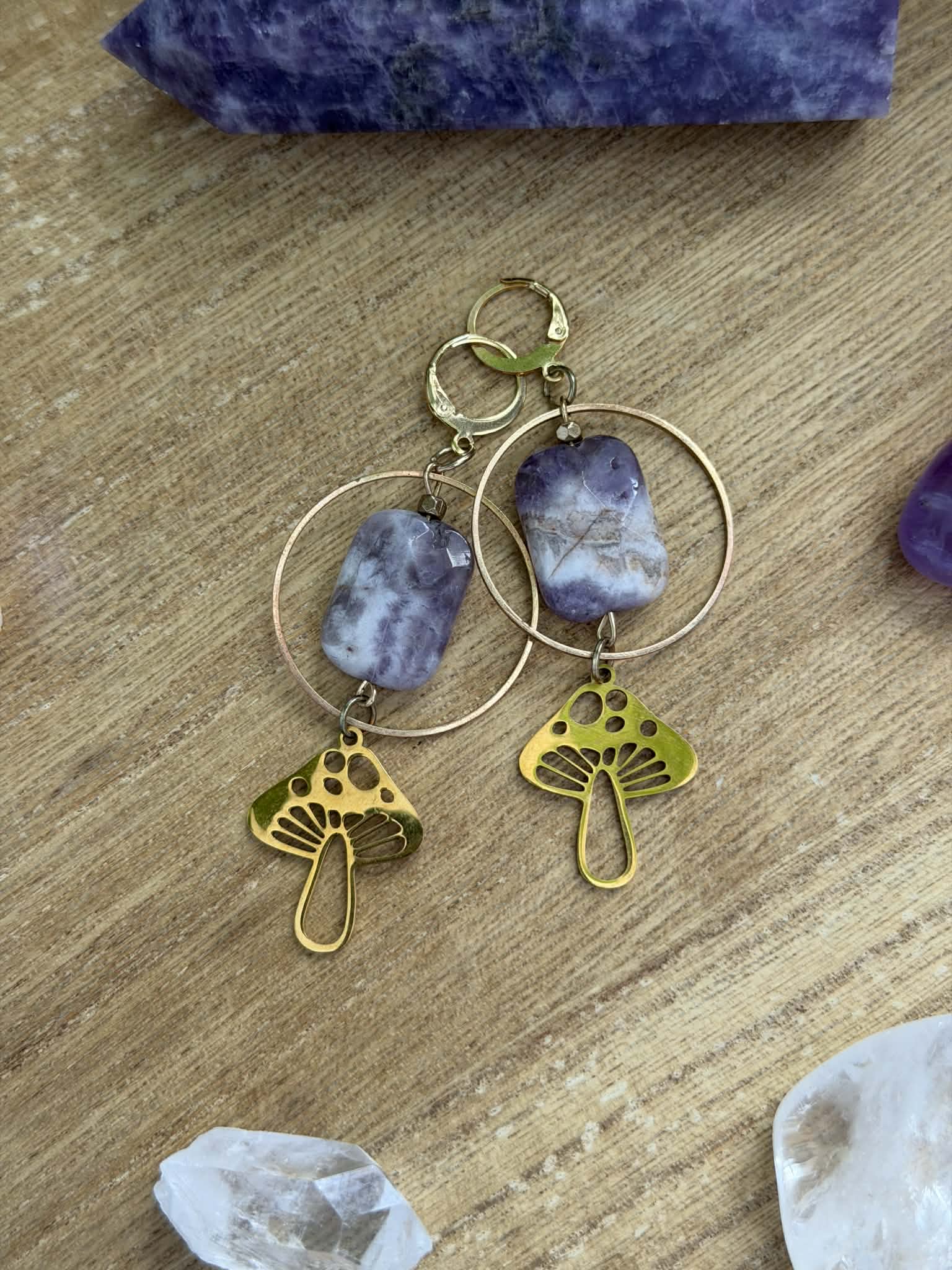 Rectangular Amethyst beads featured on gold plated stainless steel leverback clasp hooks.