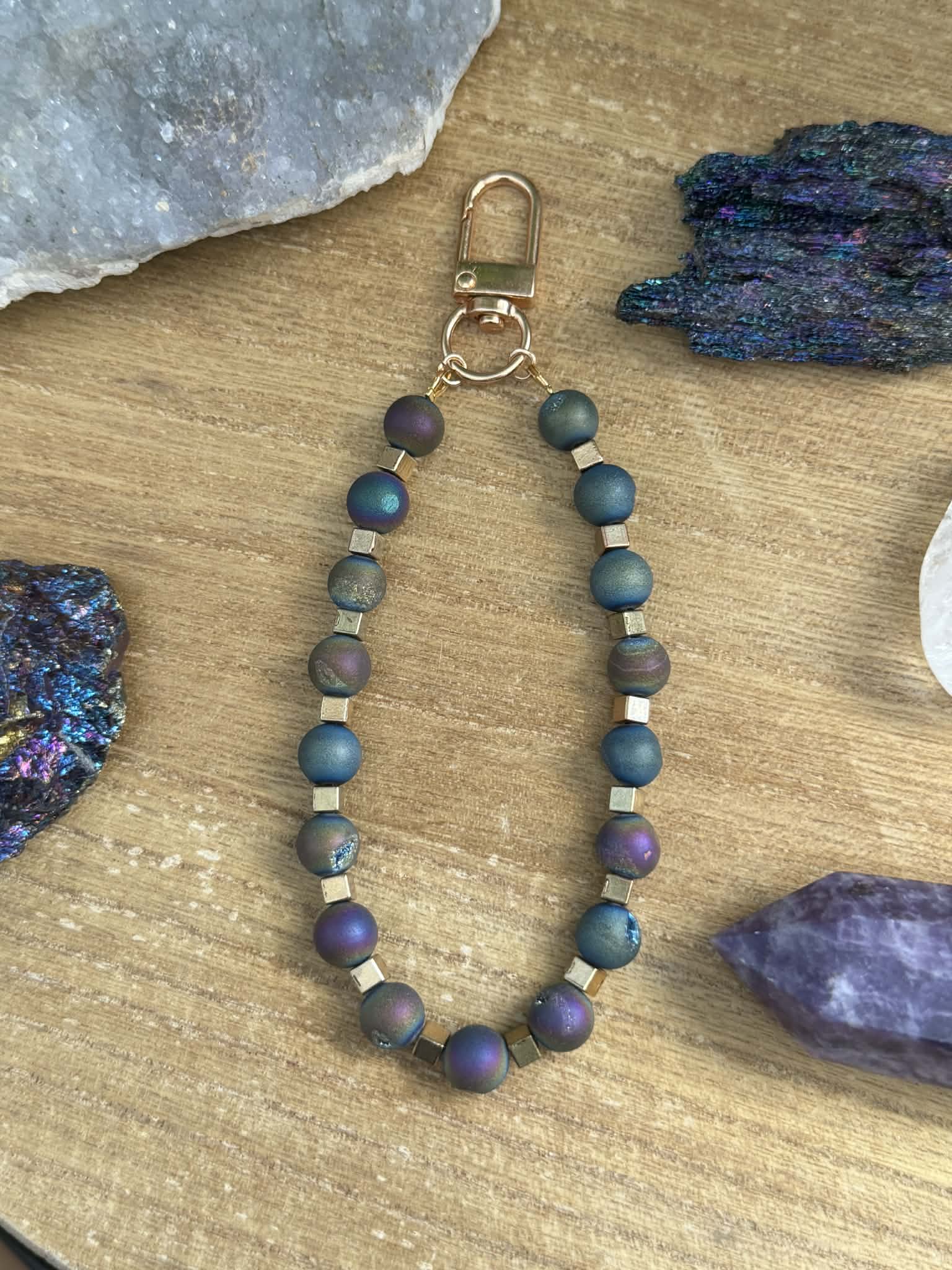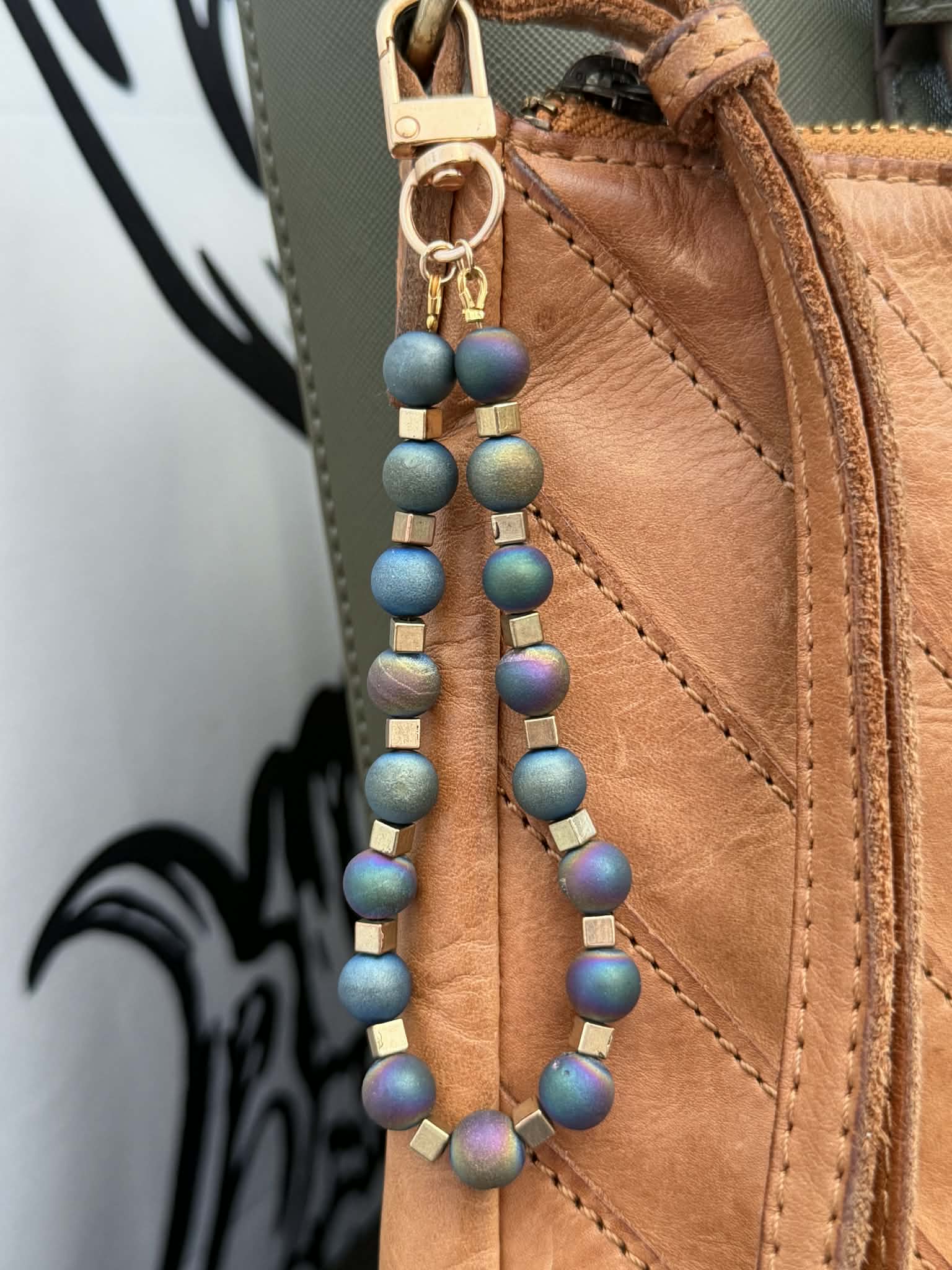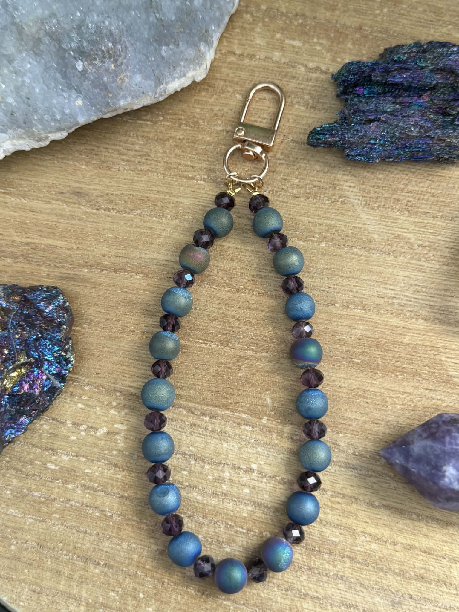 Blue druzy agate charm for your handbag, wallet, or keychain.