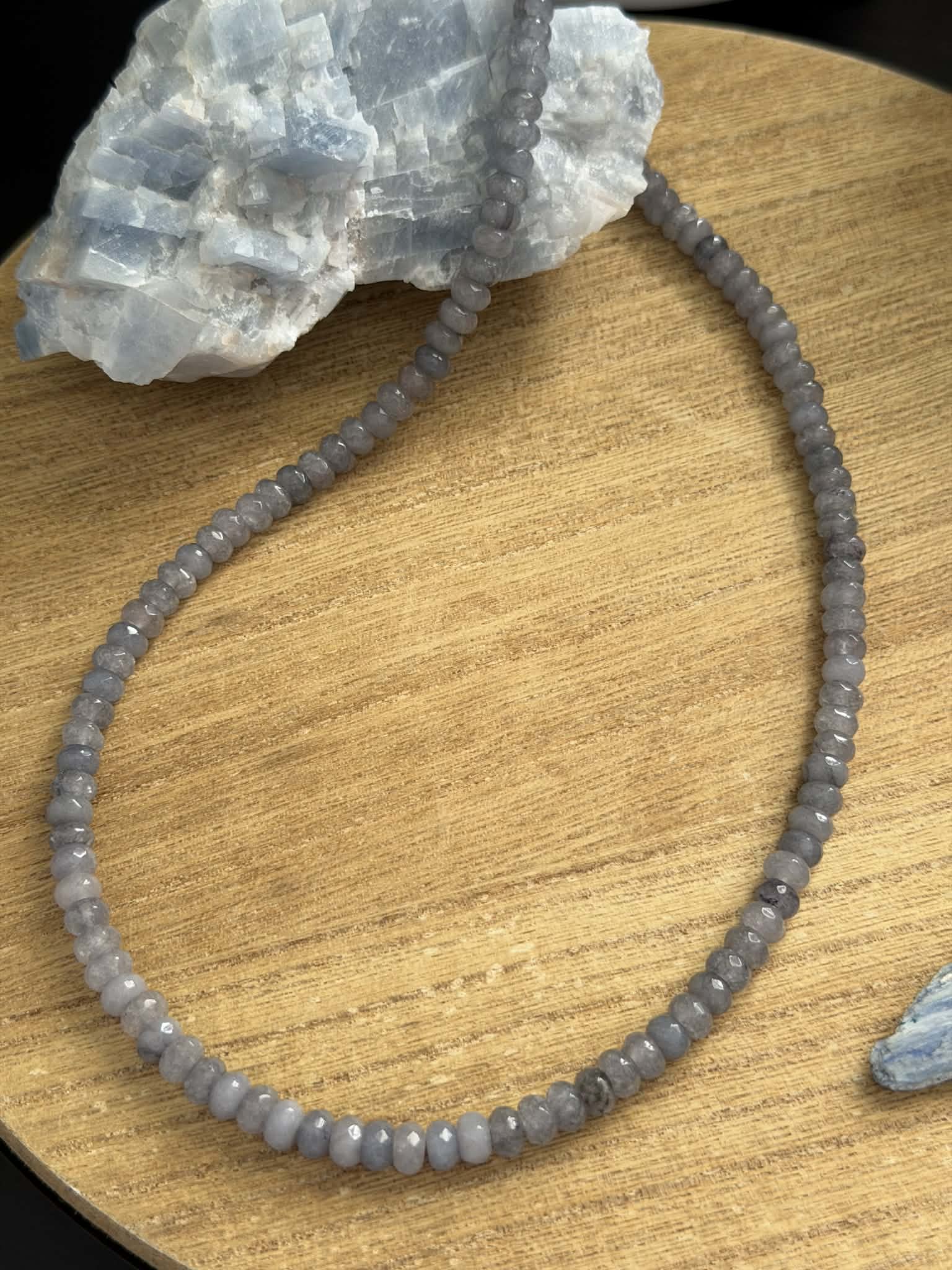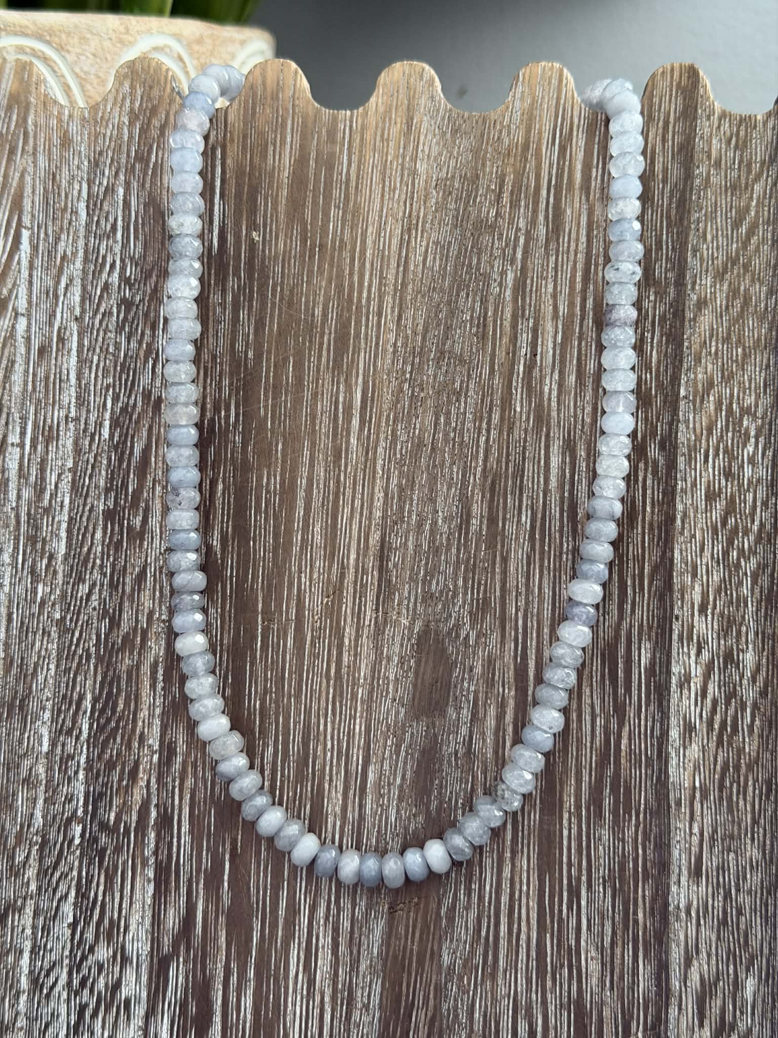 Minimal and adjustable light blue grey aventurine necklace. Perfect for adding to a layered necklace stack.