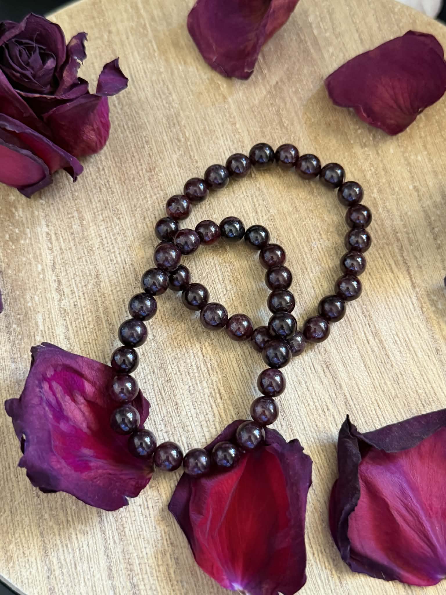 8mm stretchy beaded Garnet bracelet. 7" wrist size.