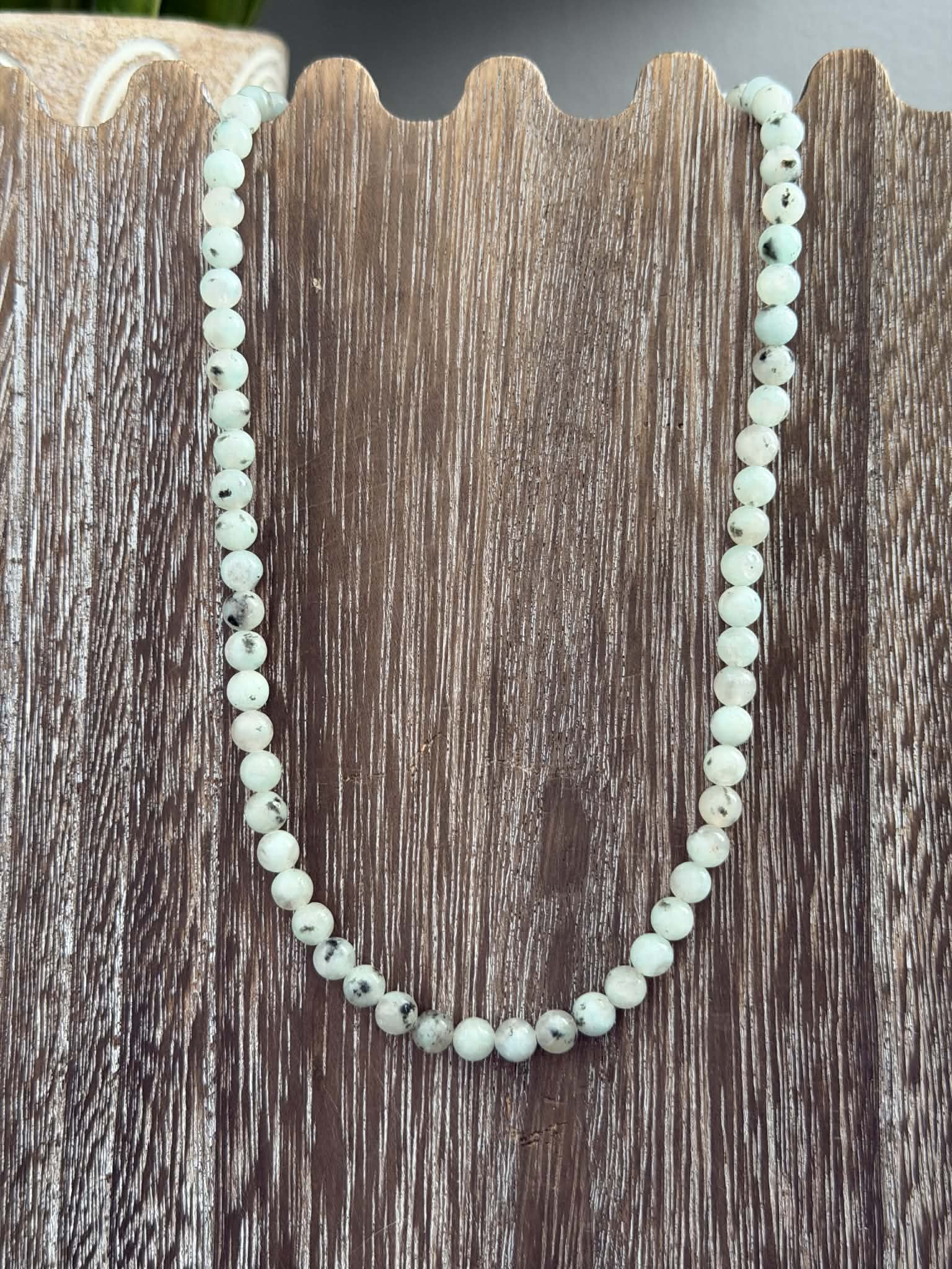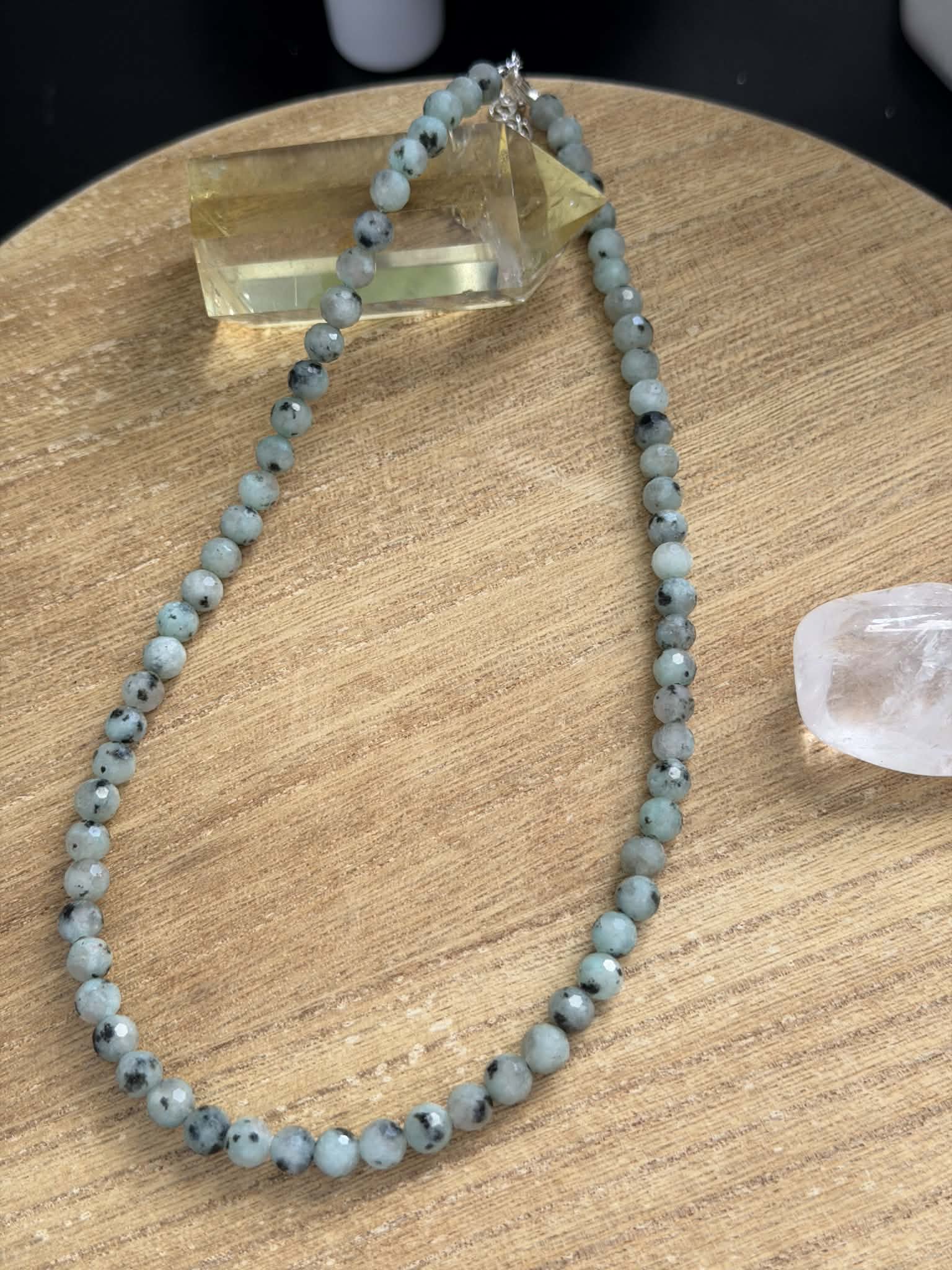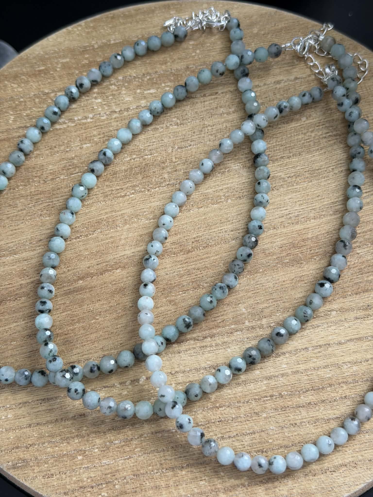 Dainty adjustable 6mm Kiwi Jasper (Amazonite & Black Tourmaline crystals) necklace. Simple and summery piece for your necklace collection.