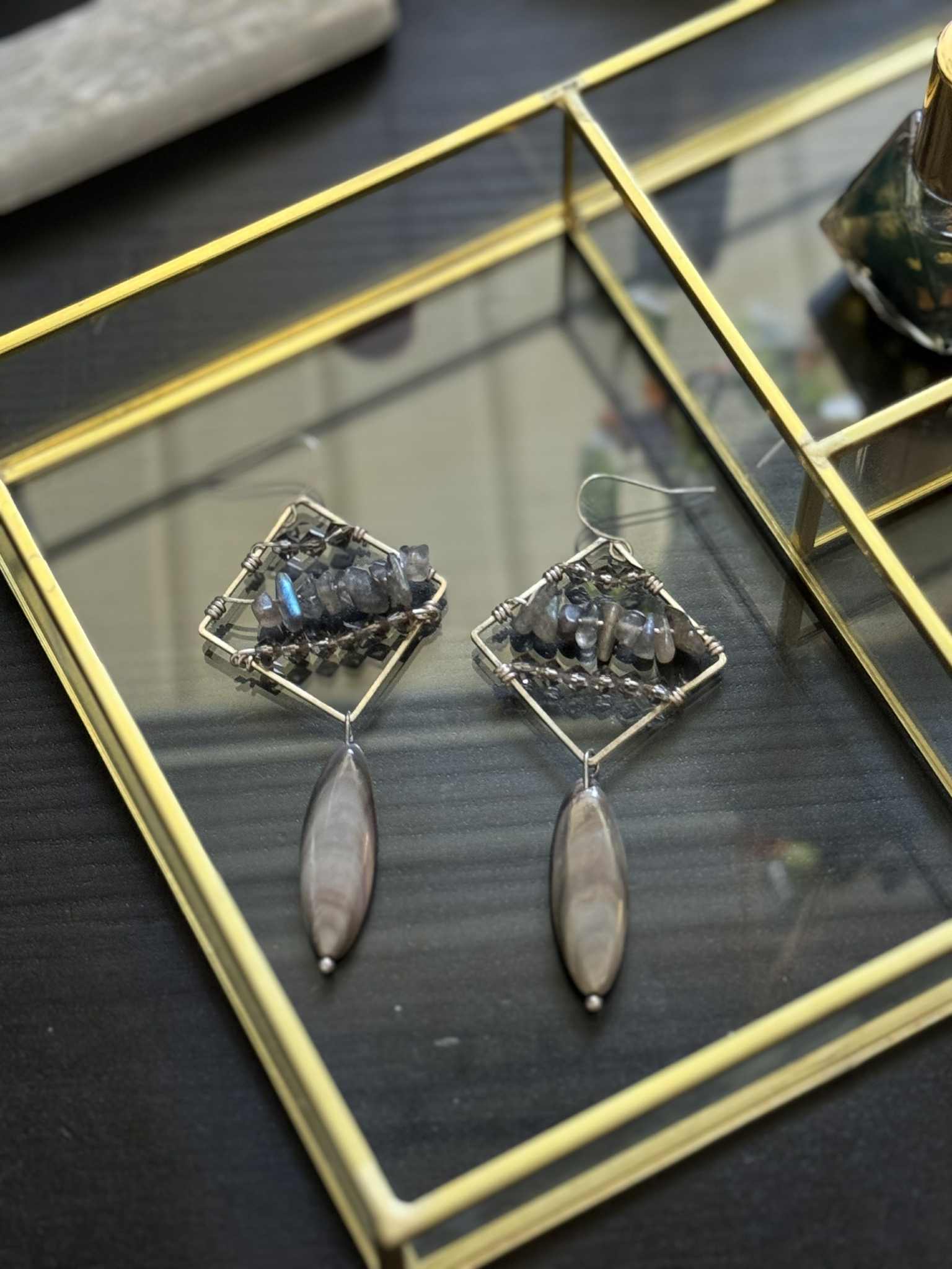 Wire wrapped Labradorite and glass beads featured with Botswana Agate.