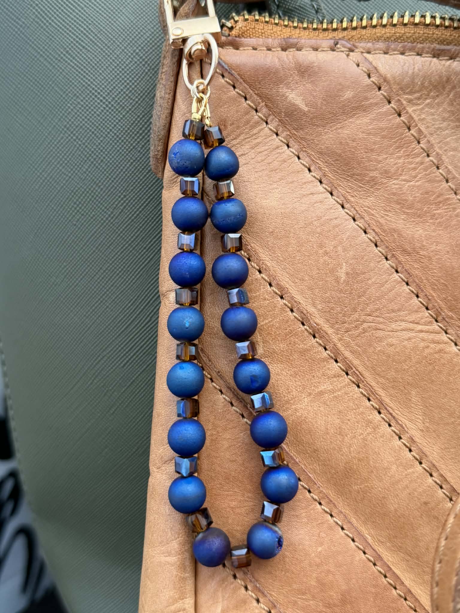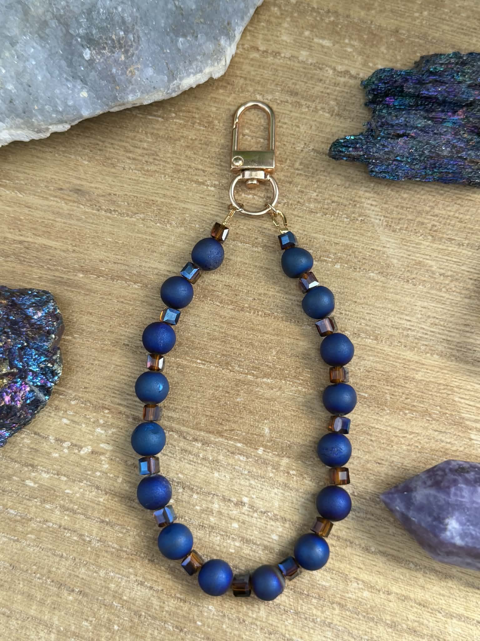 Navy blue druzy agate charm for your handbag, wallet, or keychain.