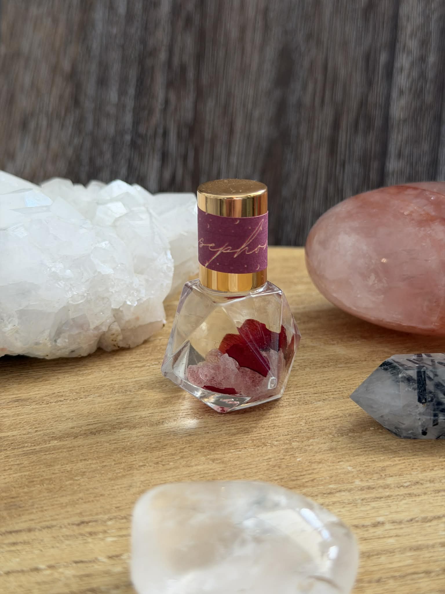 Ylang Ylang, Black Pepper, Patchouli, Rose petals, Garnet, Strawberry Quartz Infused Oil
