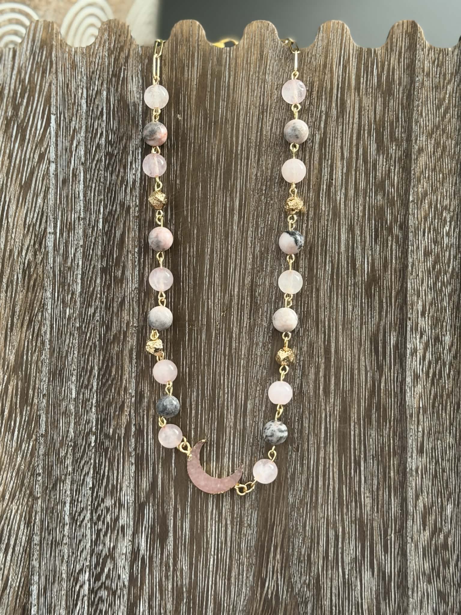 ROSE QUARTZ DRUZY MOON NECKLACE